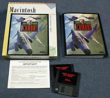 You are bidding on a box set of the Chuck Yeager's Air Combat Computer Game. This is the Macintosh version of the popular Electronics Art entertainment game. The box and two installer diskettes, as well as all manuals and original registration documents are in MINT condition. This is both a classic, as well as vintage video game for the Mac. And a RARE find at that for the for the avid flight game collector.