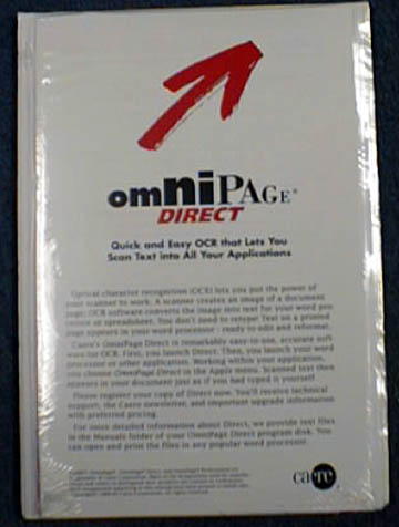You are bidding on sealed version of Omni Page Direct. Omni Page is the popular OCR software from Caere that allows you to scan text and read it into your word processing/desk top publishing applications. This is the Mac 2.0 version and includes a valid serial number so you can easily get competitive upgrades. The package is sealed and has NEVER been opened.