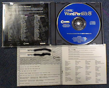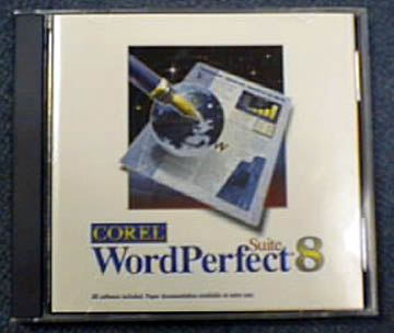 You are bidding on a Word Perfect Suite 8 CD. The CD is still in the original jewel case, though opened and is in MINT condition. Included is the Corel Word Perfect Suit Serial numbers and registration sheet. This product has never been registered. This is a Windows version of Word Perfect. And will work with Win 95/NT/98 or better.